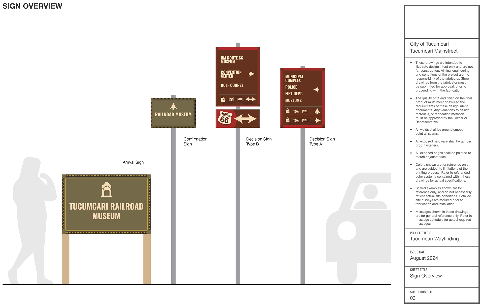 With design & branding studio Lm., the Anthropopulus team has completed (or are in the process of completing) wayfinding plans in Tucumcari, Santa Rosa, Taos, Truth or Consequences, Lovington, and Downtown Albuquerque. A high level of community engagement to confirm brand and visual identity is central to our wayfinding planning and design process, ensuring that wayfinding system elements celebrate local culture and strengthen a sense of place. Plans often include public art and murals as exploratory wayfinding elements. In 2025 and 2026, Anthropopulus will be working with Grants MainStreet and the Town of Edgewood to develop their wayfinding system plans.